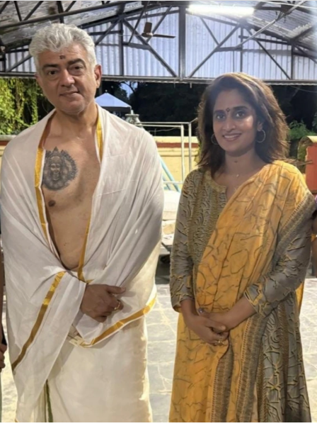 இதில் அஜித்குமார் மேலாடை அணியாத நிலையில் அவர் தனது மார்பின் வலது பக்கத்தில் பச்சைக் குத்திக் கொண்டுள்ள போட்டோ தற்போது வைரலாகியுள்ளது.அஜித் குமார் குடும்பத்தின் குல தெய்வமான பகவதியம்மனை தான் அஜித் டாட்டூ போட்டிருப்பதாக தெரிகிறது.