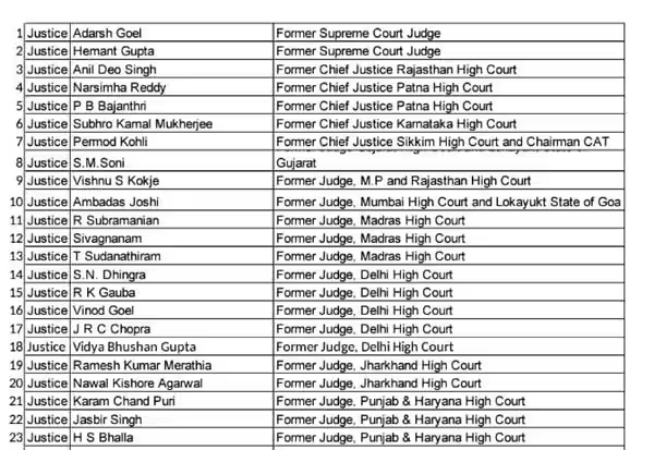 குறித்த அறிக்கையில் கையெழுத்திட்டுள்ள போட்டுள்ள 56 முன்னாள் நீதிபதிகள் பின்வருமாறு;