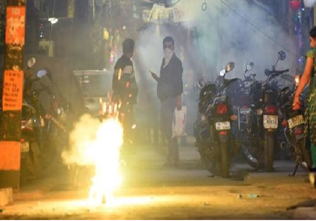 Air pollution in Delhi increased due to smoke from firecrackers during Diwali celebrations