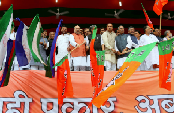 Amit Shahs election campaign says Modi will continue as Prime Minister at the Centre and Nitish Kumar as Chief Minister in the state