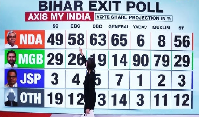 பீஹாரில் தேஜ கூட்டணி மீண்டும் ஆட்சியமைக்கும்; 'ஆக்சிஸ் மை இந்தியா' கருத்துக்கணிப்பு..!