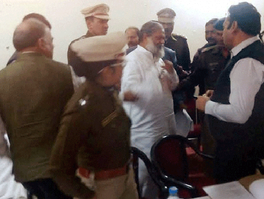பின்னர் தனது உத்தரவை டிஜிபிக்கு முறைப்படி தெரிவிக்குமாறு அங்குள்ள போலீசாருக்கு அவர் ஆணையிட்டுள்ளார். கடந்த 2015-ஆம் ஆண்டு நவம்பரில் சட்டவிரோத மது விற்பனை தொடர்பான புகாரின் போது பெண் எஸ்பி சங்கீதா காலியாவுடன் அமைச்சர் அனில் விஜ் வாக்குவாதத்தில் ஈடுபட்டார்.