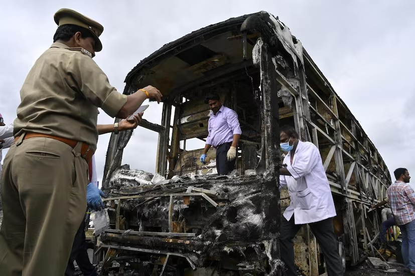 ஹைதராபாத்தில் இருந்து பெங்களூரு நோக்கிச் சென்ற ஆம்னி பேருந்து கர்னூல் அருகே இருசக்கர வாகனம் மோதி தீப்பற்றி எரிந்து விபத்துக்குள்ளானதில் 20 பேர் பரிதாபமாக பலியாகியுள்ளதோடு, சிலர் அதிர்ஷ்டவசமாக உயிர் பிழைத்துள்ள சம்பவம் நாட்டை உலுக்கியுள்ளது.