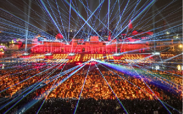 தீப உற்சவத்தை முன்னிட்டு சரயு நதிக்கரையிலும் வண்ண ஒளி லேசர் நிகழ்ச்சிகள் மற்றும் வாணவேடிக்கை நிகழ்த்தப்பட்டமை, பார்ப்போரின் கண்களுக்கு கண்கொள்ளா காட்சியாக அமைந்துள்ளது.