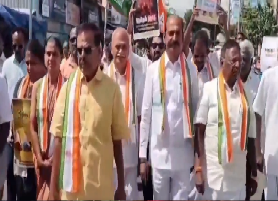 அதன்படி இன்று, காங்கிரஸ் மாநில தலைவர் வைத்திலிங்கம் எம்பி, முன்னாள் முதல்வர் நாராயணசாமி, வைத்தியநாதன் எம்எல்ஏ, இளைஞர் காங்கிரஸ் தலைவர் ஆனந்தபாபு, மகிளா காங்கிரஸ் தலைவி நிஷா மற்றும் நிர்வாகிகள் பலர் விவிபி நகர் அருகே திரண்டு ஆர்ப்பாட்டத்தில் ஈடுப்பட்டனர்.