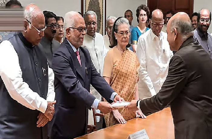இதை அடுத்து, மத்தியில் ஆளும் பாஜ கூட்டணி சார்பில் பிரதமர் மோடி மற்றும் கட்சியின் தலைவர் நட்டா ஆகியோர் இணைந்து, தேசிய ஜனநாயக கூட்டணி சார்பில் தமிழகத்தைச் சேர்ந்த சி.பி. ராதாகிருஷ்ணன் முன்மொழிந்து, அவர் ஏகமனதாக துணை ஜனாதிபதி வேட்பாளராக நிறுத்தியுள்ளனர். எதிர்க்கட்சிகளின் இண்டி கூட்டணி வேட்பாளராக ஓய்வு பெற்ற உச்ச நீதிமன்ற நீதிபதி பி. சுதர்சன் ரெட்டியை வேட்பாளராக நிறுத்தியுள்ளனர். இந்நிலையில், வரும் எதிர்வரும் செப்டம்பர் 09-ஆம் தேதி துணை ஜனாதிபதி தேர்தல் நடைபெறவுள்ளது.
