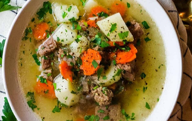 முக்கியமாக mutton, உருளைக்கிழங்கு, காரட், வெங்காயம் மற்றும் இயற்கை மூலிகைகள் சேர்த்து