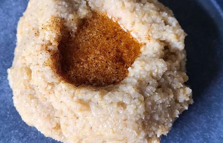 கஞ்சி போல இருக்கும் இந்த உணவு, நடுவில் பள்ளம் செய்து அதில் வெண்ணெய், மிளகாய் சாஸ், தேன் போன்றவற்றை ஊற்றி கலக்கி சாப்பிடப்படுவது சிறப்பு.