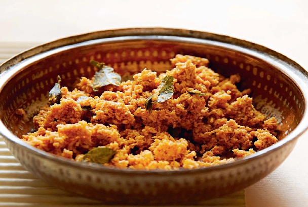 ஒரு பாத்திரத்தில் துருவிய தேங்காய், மிளகாய் தூள், நறுக்கிய வெங்காயம் மற்றும் உப்பு சேர்த்து நன்றாக கலந்து கொள்ள வேண்டும்.