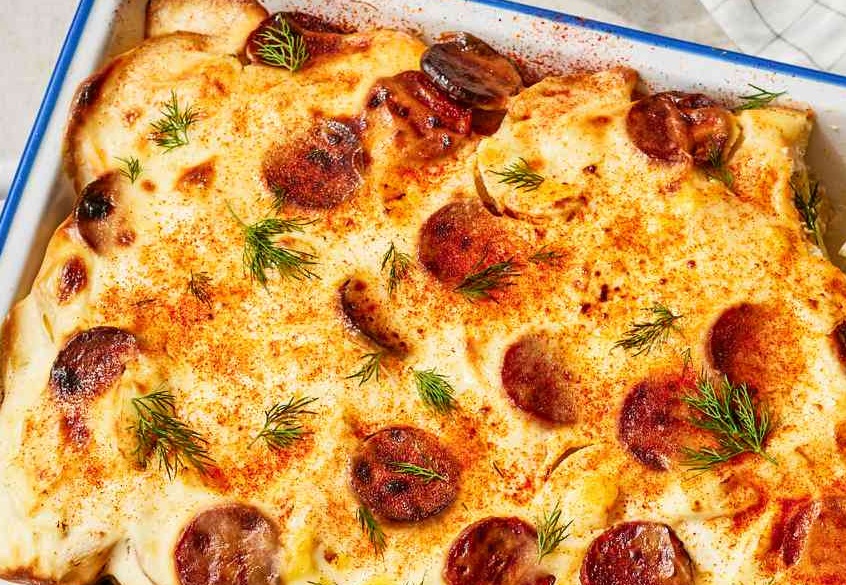 உருளைக்கிழங்கு, முட்டை, சாஸேஜ் மற்றும் சவர் க்ரீம் அடுக்குகளாக அடுக்கி ஓவனில் வேகும் ஹங்கேரியின் பிரபலமான கம்ஃபர்ட் உணவு!