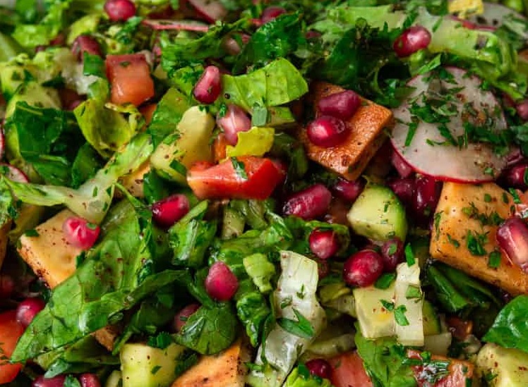 Fattoush என்பது ஜோர்டானியாவின் பிரபலமான க்ரிஸ்பி சாலட். புதிய காய்கறிகள், தக்காளி, கீரைகள் மற்றும் துண்டுகளாக வதக்கிய ரொட்டி சேர்த்து தயாரிக்கப்படும் சாலட் இது. ருசிகரமான கிரிஸ்பி டெக்ஸ்ச்சர் மற்றும் சீரான சுவை இந்த சாலட்டின் சிறப்பாகும்.