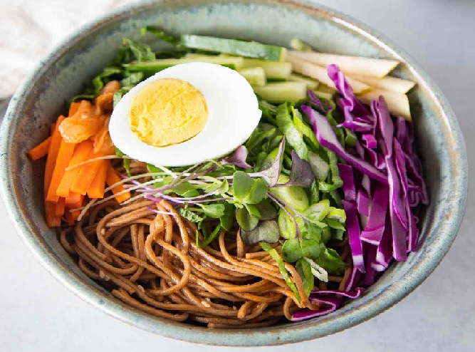 Bibim Guksu என்பது கொரியாவின் பிரபலமான குளிர்ந்த கார நூடில்ஸ் (Spicy Cold Noodles) உணவாகும்.