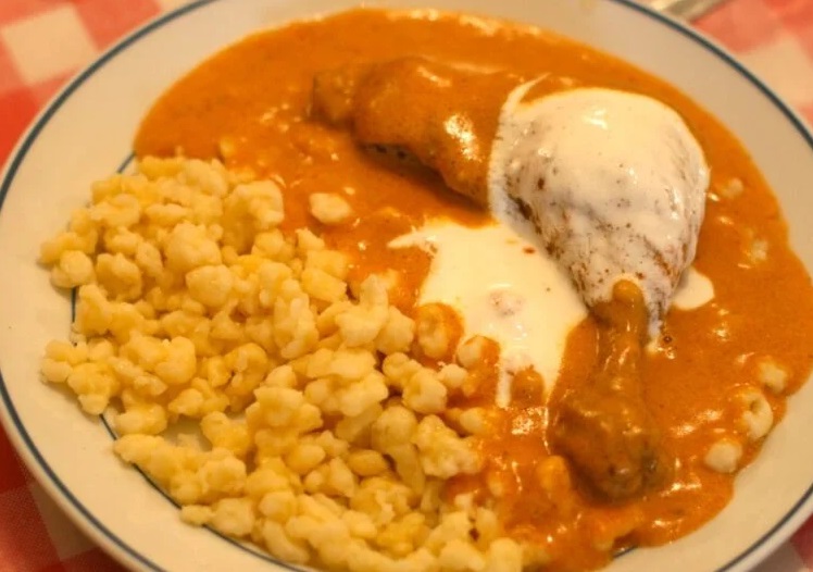 இதில் சிக்கனை மெல்ல வேகவைத்து, பப்ப்ரிக்கா, வெங்காயம், தக்காளி, க்ரீம் சேர்த்து சுவைமிகு கிரேவியாக தயாரிக்கப்படுகிறது.