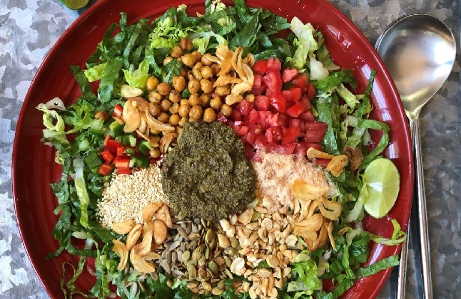 Lahpet Thoke சாலட் தயார்! உடனே பரிமாறுங்கள், இதன் காரசாரமும் க்ரஞ்சியானதும் தனிச்சுவையும் உங்களைக் கவரும்.