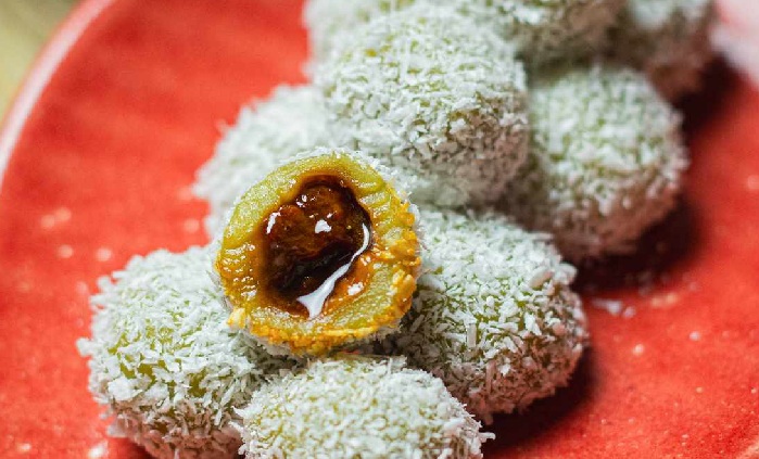 மேலே பூசப்படும் தேங்காய் துருவல் இந்த இனிப்புக்கு முழுமை அளிக்கிறது.