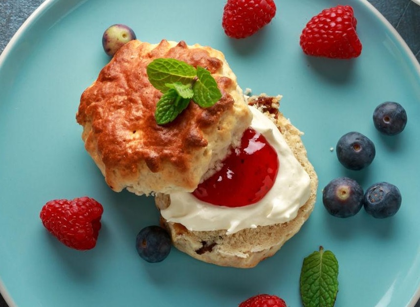 Scones வெளியில் லேசாக crispy, உள்ளே மென்மையாக இருக்கும். ஜாம் இனிப்பு மற்றும் கிரீமின் மென்மை சேர்ந்து தனித்துவமான சுவையை தருகிறது. ஒரு கப் டீ உடன் சேர்த்து சாப்பிடும் போது அதன் சுவை மேலும் உயர்கிறது. இங்கிலாந்தின் டீ கலாச்சாரத்தில் இது இன்றியமையாத ஒரு பகுதி.
