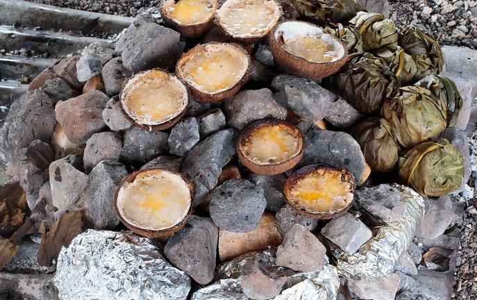 பழங்கள், மீன், இறைச்சி மற்றும் காய்கறிகள் ஆகியவற்றை மண்ணில் தோண்டிய ஓவெனில், நெருப்பில் வேக வைத்து, தனித்துவமான சுவை மற்றும் வாசனை பெறும் வகையில் தயாரிக்கப்படுகிறது.