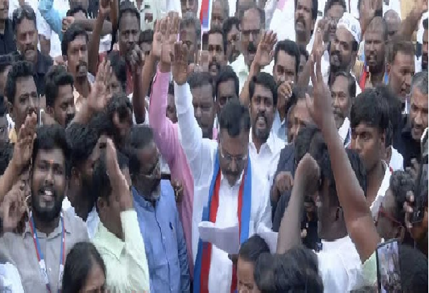 திருப்பரங்குன்றத்தில் நடந்த ஆர்ப்பாட்டத்தில் விடுதலை சிறுத்தைகள் கட்சியின் தலைவர் திருமாவளவன் கலந்துகொண்டு பேசிய போது, தி.மு.க., ஆட்சியில் எதிர்த்து போராட பல விஷயங்கள் இருந்தாலும் பா.ஜ.,வினர், திருப்பரங்குன்ற விவகாரத்தை மட்டுமே கையில் எடுத்துள்ளனர். முருகன் என்ற பெயரை வைத்துக் கொள்வதற்கு ஏன் தயங்குகிறார்கள்..? என்று கேள்வி எழுப்பியுள்ளார்.