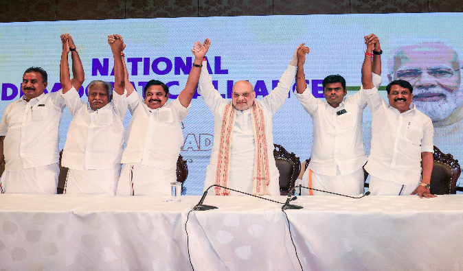 இந்நிலையில், திமுக போட்டியாகக் கருதப்படும் விஜய்யின் தமிழக வெற்றிக் கழகத்தை தேசிய ஜனநாயக கூட்டணிக்குள் கொண்டுவர பாஜக முயற்சிப்பதாக தகவல்கள் தெரிவிக்கின்றன. இதேவேளை, தவெகவுடன் பேச்சுவார்த்தை நடத்தவில்லை என அதிமுக பொதுச்செயலாளர் கே.பழனிசாமி கூறியுள்ளார்.