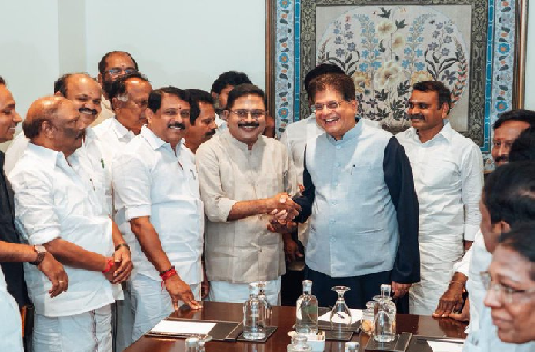 அ.ம.மு.க. பொதுச் செயலாளர் டி.டி.வி.தினகரன், மத்திய அமைச்சரும் , தமிழக தேர்தல் பொறுப்பாளருமான பியூஷ் கோயலை சந்தித்து தேசிய ஜனநாயக கூட்டணியில் மீண்டும் இணைந்துள்ளர்.