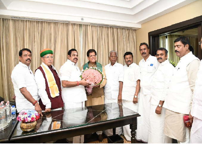 அதிமுக பொதுச்செயலாளர் எடப்பாடி பழனிசாமியை தமிழக பாஜ தேர்தல் பொறுப்பாளர் பியூஷ் கோயல் சந்தித்து பேச்சு வார்த்தை நடத்தினர். அதன் பின்னர், நிருபர்களிடம் பேசிய இபிஎஸ் கூறியதாவது: நீண்ட இடைவேளைக்கு பிறகு மத்திய அமைச்சர் பியூஷ் கோயலை சந்தித்து பேசியதாகவும், அவர் தமிழக நிலவரங்கள் குறித்து கேட்டறிந்ததாகவும் குறிப்பிட்டுள்ளார்.