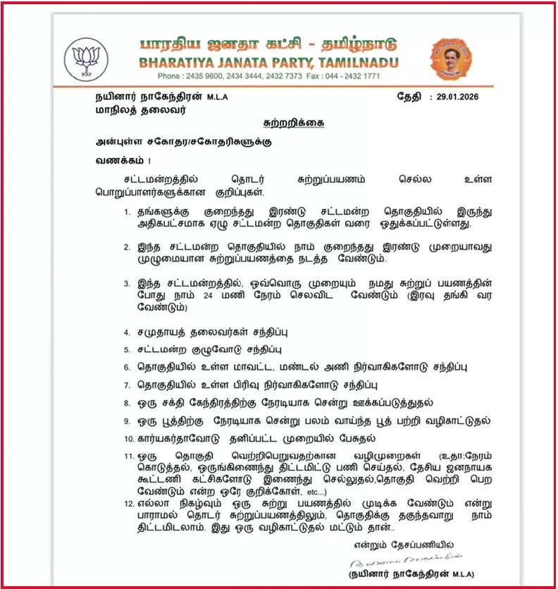 தேர்தல் வியூகத்தின் ஒரு பகுதியாக, பா.ஜ.க. குறிவைக்கும் முக்கியத் தொகுதிகளில் தேர்தல் பணிகளை முடுக்கிவிடச் சிறப்புப் பொறுப்பாளர்கள் நியமிக்கப்பட்டுள்ளதாக மாநிலத் தலைவர் நயினார் நாகேந்திரன் அறிவித்துள்ளார்.