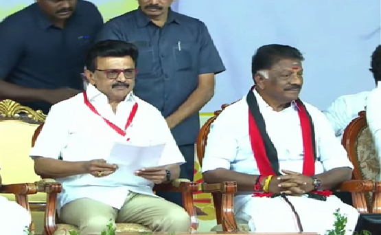 இந்த நிலையில் திமுக கட்சியில் மாநாட்டிற்கு வந்த அவரை மேடைக்கு வந்த போது அங்கிருந்த திமுக அமைச்சர்கள் மற்றும் நிர்வாகிகள் எழுந்து நின்று அவரை உற்சாகத்துடன் வரவேற்றனர். அதாவது, நீண்டகாலமாக அதிமுகவில் இருந்து முதல்வராகவும் பதவி வகித்த ஓபிஎஸ் திமுக மாநாட்டில் பங்கேற்பது இதுவே முதல்முறையாகும்.