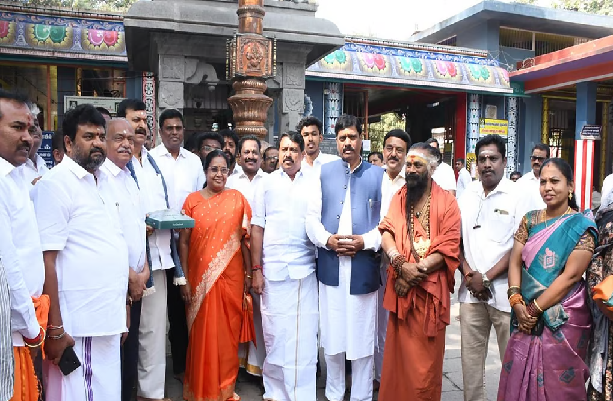 அத்துடன், ஆயிரம் ஆண்டுகளுக்குப் பிறகு அந்த கோயில் புனரமைக்கப்பட்டு இன்று 75 ஆண்டுகள் ஆகிறது. இந்த 75-வது ஆண்டு விழாவில் தமிழகம் முழுவதும் 150 சிவாலயங்களில் சாந்தி பூஜை நடைபெறுகிறது. இந்தியா முழுவதும் எல்லா சிவாலயங்களிலும் சாந்தி பூஜை நடைபெறுகிறது என்று தெரிவித்துள்ளார். இதனடிப்படையில் சிவாலயத்தில் இன்று நாங்கள் வழிபாடு செய்திருக்கிறோம் என்றும், இந்த வழிபாட்டின் போது, என்டிஏ ஆட்சி அமைய வேண்டும் என வேண்டியுள்ளோம் என்று குறிப்பிட்டுள்ளார்.