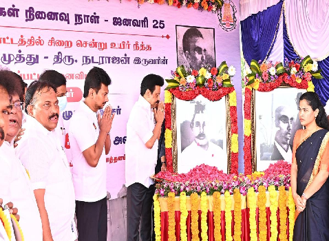 தமிழ்மொழித் தியாகிகள் நினைவு நாளை முன்னிட்டு ஜனவரி 25-இல் மொழித்தியாகிகள் நினைவிடத்தில் அமைச்சர்கள் மலர் வணக்கம்..!