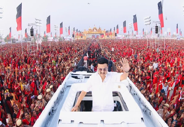 தஞ்சையில் 'வெல்லும் தமிழ்ப் பெண்கள்' மாநாட்டில் முதலமைச்சர் மு.க.ஸ்டாலின் கலந்து கொண்டு உரையாற்றினார். அப்போது அவர் கூறியதாவது: தஞ்சை மண் திராவிட இயக்கத்தின் கோட்டை எனவும், திமுக மகளிரணியினர் ராணுவப் படையை போல திரண்டுள்ளனர் என்று குறிப்பிட்டுள்ளார்.