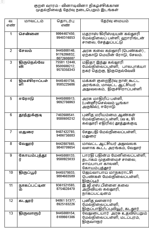 சென்னை மாவட்டத்தில் பணிபுரியும் அரசு மற்றும் அரசுசார் நிறுவன அலுவலர்கள்/பணியாளர்கள் (அனைத்து நிலைகளிலும்) மற்றும் ஆசிரியர்கள் (அனைத்து நிலைகளிலும்) முதல்நிலைத் தேர்வில் (கொள்குறி முறை) பங்குபெறும் வகையில், இதனுடன் இணைக்கப்பட்டுள்ள விரைவுத் துலங்கல் குறியீட்டின் மூலம் பதிவு செய்யப்பெறலாம்.