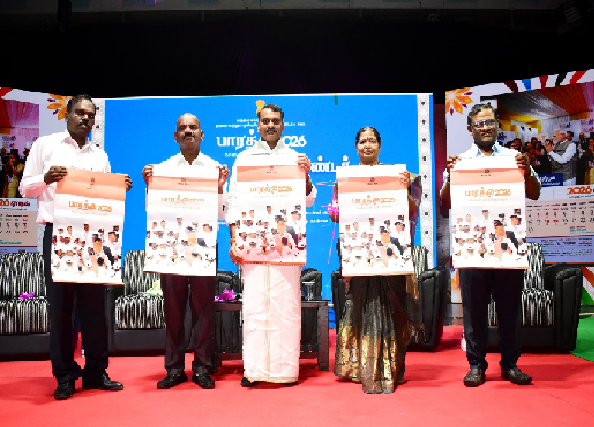 மத்திய தகவல் மற்றும் ஒலிபரப்பு அமைச்சகம் சார்பில், 'பாரத் 2026' என்ற இந்திய அரசு காலண்டர் வெளியீட்டு விழா, சென்னையில் நடைபெற்றது. இதில் பங்கேற்ற மத்திய இணையமைச்சர் எல்.முருகன் காலண்டரை வெளியிட்ட பின், பேட்டியளித்தார்.