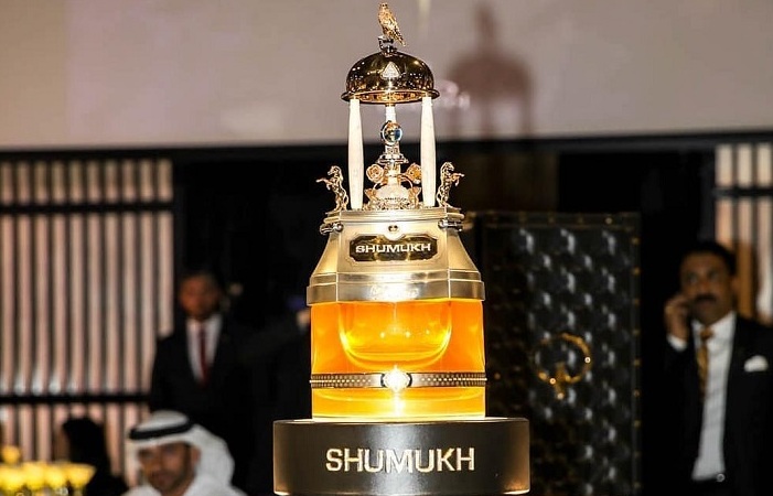துபாயை மையமாகக் கொண்டு செயல்படும் “The Spirit of Dubai” நிறுவனத்தால் உருவாக்கப்பட்ட இந்த பர்ஃப்யூம், வாசனைக்காக மட்டுமல்ல, அதன் பாட்டிலுக்காகவே ஒரு அருங்காட்சியகத்தில் வைக்கத் தகுந்த கலைப் பொருளாக கருதப்படுகிறது.இந்த Shumukh பாட்டில் என்பது ஒரு சாதாரண கண்ணாடி குடுவை அல்ல.