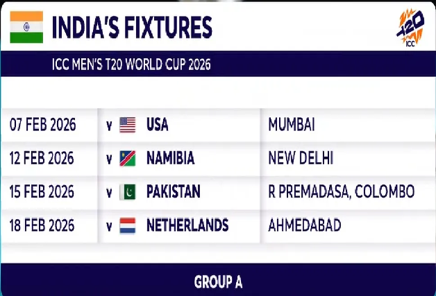 நடப்பு சாம்பியனான இந்திய அணி, வரும் 2026 பிப்ரவரி 07ஆம் தேதி மும்பையில் அமெரிக்காவை எதிர்கொள்கிறது. இதன் மூலம் தனது 2026 டி 20 உலக கோப்பைப் பயணத்தைத் ஆரம்பிக்கிறது.