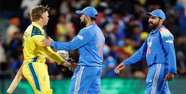 இன்று நடந்த போட்டியில், டாஸ் வென்ற ஆஸி., அணி பீல்டிங் தேர்வு செய்தது. அதன்படி, முதலில் களமிறங்கிய இந்திய அணி சார்பில் தொடக்க வீரர்களாக ரோகித் சர்மா மற்றும் கேப்டன் சுப்மன் கில் களமிறங்கினர். கில் 09 ரன்னில் ஆட்டமிழந்தார். மிகவும் எதிர்பார்க்கப்பட்ட விராட் கோஹ்லியும் 04 பந்துகளை சந்தித்து டக் அவுட் ஆனார். பின்னர் முன்னாள் கேப்டன் ரோகித் சர்மாவும், ஸ்ரேயாஸ் ஐயரும் ரன்களை சேர்த்தனர். அதில் ரோகித் 73 ரன்களும், ஸ்ரேயாஸ் 61, அக்சர் படேல் 44 ரன்களுக்கு ஆட்டமிழந்தனர்.