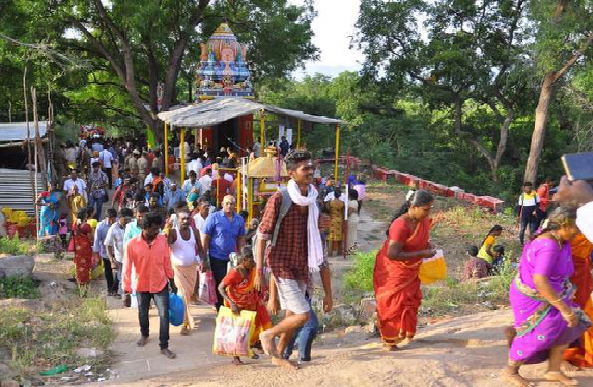 பக்தர்களின் உடைமைகளை சோதனை செய்த வனத்துறையினர் எளிதில் தீப்பற்றக்கூடிய பொருட்கள், பாலித்தீன் பைகள் கொண்டு செல்லக்கூடாது என அறிவுறுத்தப்பட்டுள்ளனர். இதையடுத்து மலைப்பாதை வழியாக பக்தர்கள் கோயிலுக்குச் அனுப்பப்பட்டனர்.