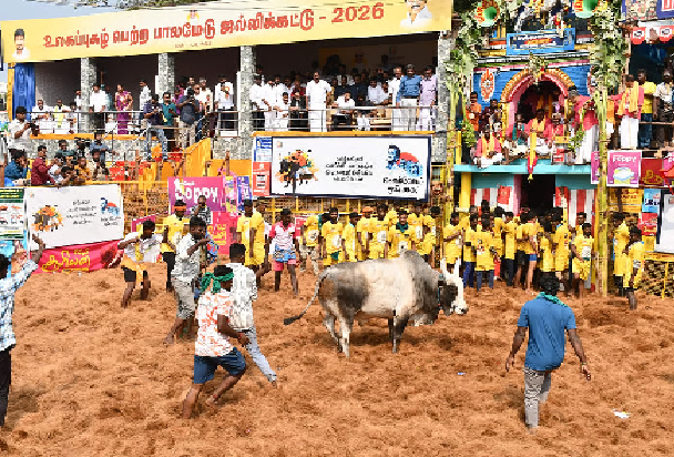 பொங்கல் பண்டிகையை முன்னிட்டு உலக புகழ்பெற்ற பாலமேடு ஜல்லிக்கட்டு போட்டி இன்று நிறைவடைந்தது. பாலமேடு ஜல்லிக்கட்டு போட்டியில் 870 காளைகள் அவிழ்க்கப்பட்ட நிலையில், 461 வீரர்கள் களமிறங்கினர். பாலமேட்டு ஜல்லிக்கட்டு போட்டியை துணை முதல்வர் உதயநிதி ஸ்டாலின் இன்று காலை தொடங்கி வைத்தார்.
