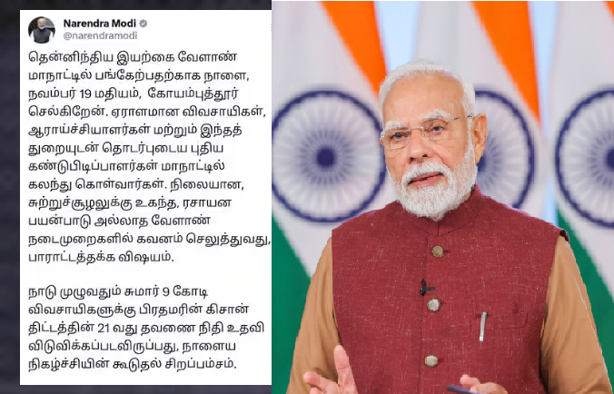 Prime Minister Modi posts in Tamil about his visit to the Coimbatore Agriculture Conference