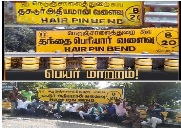நாதகவினர் போராட்டத்திற்கு கிடைத்த வெற்றி; ஈ.வெ.ரா. பெயரை அகற்றி மீண்டும் வள்ளல் தகடூர் அதியமான் பெயரை எழுதிய நெடுஞ்சாலைத்துறை..!