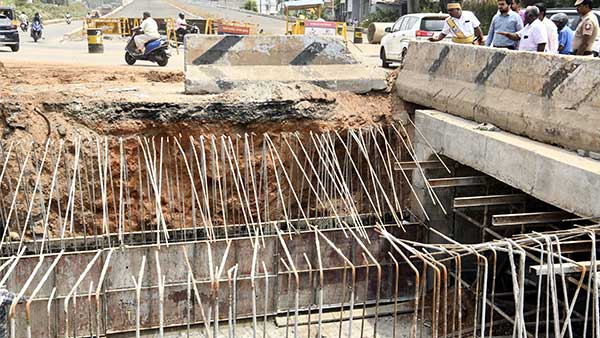 இரயில்வே மேம்பாலம் கட்டும் பணிகள் நடைபெற்று வருவதை