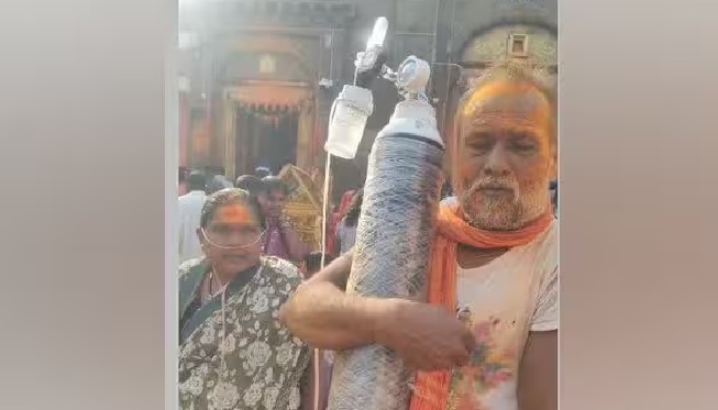 நீண்ட பயணத்தை கடந்து கோவிலுக்கு வந்த அவர், மனைவி எங்கு சென்றாலும் ஆக்சிஜன் சிலிண்டரைத் தோளில் சுமந்து கொண்டு துணையாக நடந்தார். அந்த காட்சி கோவிலில் இருந்த பக்தர்களின் கண்களை கலங்கச் செய்தது.