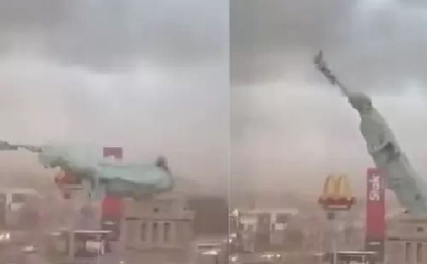 Hurricane shock southern Brazil 24 meter tall Statue of Liberty falls and collapses Viral video