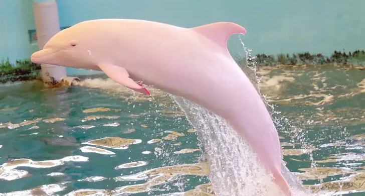 இவ்வாறு முழுமையாக பிங்க் நிறம் கொண்ட டால்பின்கள் உலகில் மிகவும் அரிதாகவே காணப்படுகின்றன. அவை தண்ணீரின் வெப்பம், சூரிய ஒளி, வயது மற்றும் பித்தப்பொதி போன்ற காரணங்களால் இருப்பினும் வெள்ளை–பிங்க் கலவையில் அழகாக தெரிகின்றன.