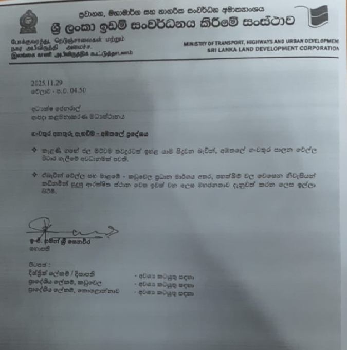 கரையோரம், மாலபே - கடுவெல பிரதான வீதி மற்றும் அதைச் சுற்றியுள்ள தாழ்வான பகுதிகளில் வசிக்கும் மக்கள் உடனடியாக பாதுகாப்பான இடங்களுக்கு வெளியேறுமாறு வலியுறுத்தப்பட்டுள்ளனர். மேலும், லக்சபான நீர்த்தேக்கத்தின் 02 வான் கதவுகளும், காசல்ரீ நீர்த்தேக்கத்தின் 09 வான் கதவுகளும் ஏற்கனவே திறந்து விடபட்டுள்ளன.